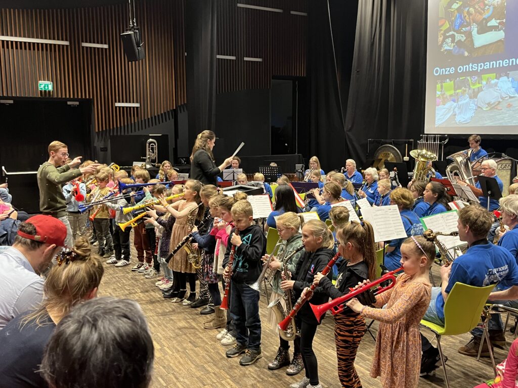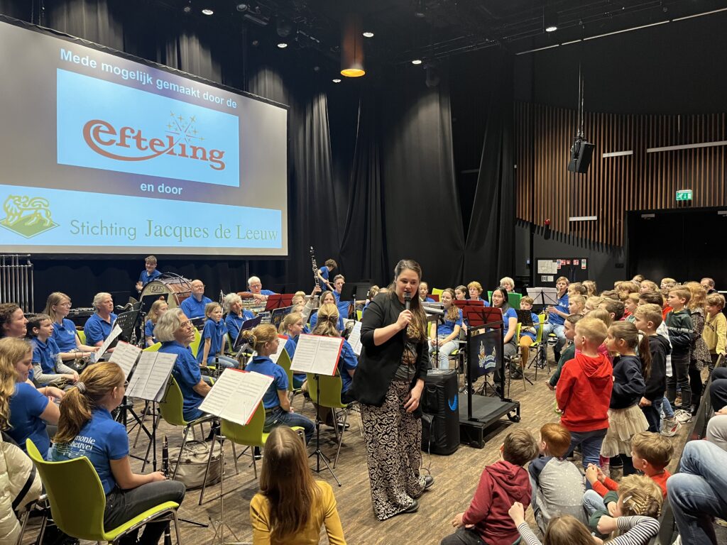 Het scholenproject wordt elk jaar dankbaar omarmd door de schoolleiding. Alle vijf de basisscholen in Kaatsheuvel en voor de eerste keer ook De Start in De Moer ruimden lestijd in voor onze docenten Demos Horn en Juan Ramirez. Bij Den Bussel schoven zelfs twee groepen aan. Het vraagt elk jaar van de Opleidingscommissie weer om een strakke planning en organisatie waarvoor vele vrijwilligers bereid zijn tijd vrij te maken. Ook financieel is het elk jaar weer een hele toer om het scholenproject rond te breien. Het vraagt om een financiële inspanning vanuit de kas van de harmonie, maar dankzij de forse financiële steun van De Efteling en dit jaar ook van de Stichting Jacques de Leeuw kon het scholenproject weer georganiseerd worden en wordt de jeugd de interesse voor muziek en het bespelen van een instrument over gebracht. Alle groepen 5 van de basisscholen De Vaert, De Berk, De Touwladder, Den Bussel, De Kinderboom en De Start in De Moer kregen weer twee lessen waarin ze alles werd verteld over instrumenten en ritmes. Ook werden er instrumenten bespeeld en werden enkele nummers ingestudeerd. Slagwerkdocent Demos Horn had de kinderen als een volleerde slagwerkband de samba geleerd en nam ze spelend op xylofoons mee op een reis door Azië waarbij ritmisch China, India en Indonesië werd aangedaan. Saxofoonleraar Juan Ramirez nam weer de lessen over het orkest en blaasinstrumenten voor zijn rekening, waarbij de jeugd zich weer laaiend enthousiast stortte op de door de harmonie meegenomen instrumenten. Daarop werd onder leiding van Juan Ramirez het nummer The bare necessities ingestudeerd dat tijdens de afsluiting in Het Klavier samen met het Midden Orkest werd uitgevoerd. Gadegeslagen door supertrotse ouders, die alles op foto en film vast legden. Bij de presentatie van alle verschillende instrumenten in het orkest dankte dirigent Anne Peters De Efteling en de Stichting Jacques de Leeuw voor hun steun, waarbij de slagwerkers op marimba een muzikale link legden naar de paddenstoelenmuziek in De Efteling. De Opleidingscommissie kan weer met voldoening terug kijken op een geslaagd scholenproject 2024. Op de scholen kijkt de jeugd van groep 4 nu al uit naar volgend schooljaar, want dan zijn zij aan de beurt.